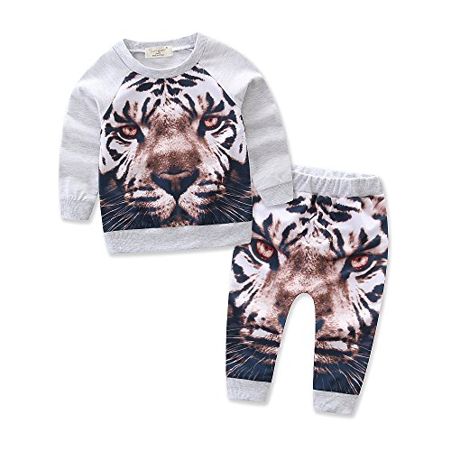 BoysコットンAnimal Tigerロングパンツ袖Tシャツセットベビーレジャー運動服 tag:80/6-12M イエロー 17726