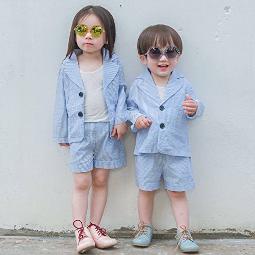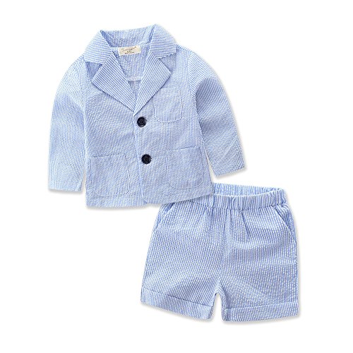 Baby Gentleman Suit Long Sleeved男の子女の子ジャケット+ショーツ2 pcセット服ユニセックス tag:90/1-2Y ブルー 17702