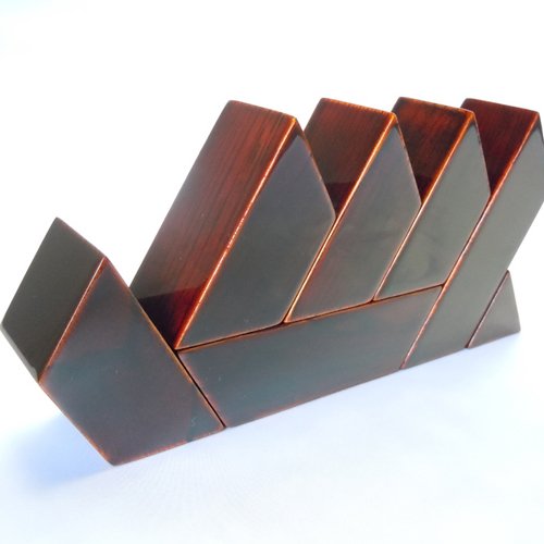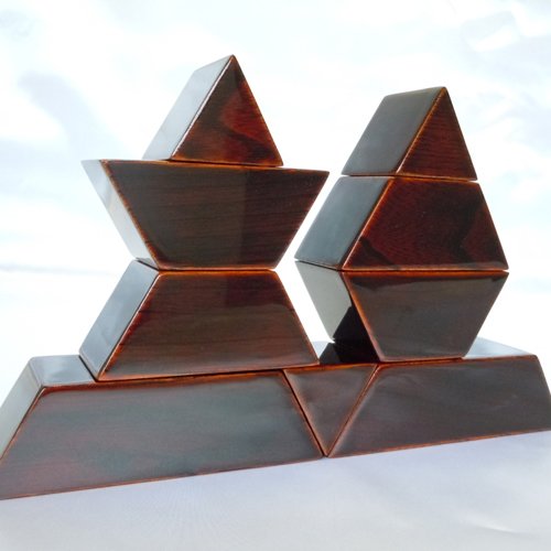 - 三角形と台形2種からなる独自のピース構成で、無限の造形が楽しめる