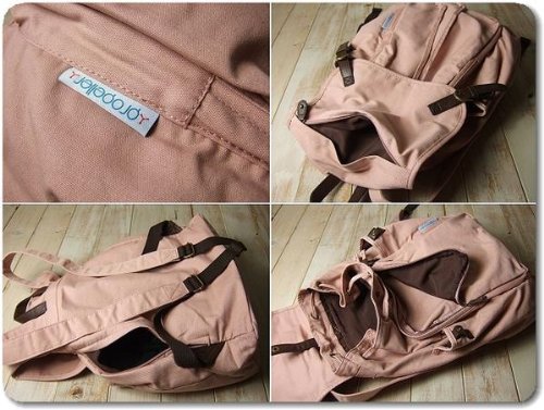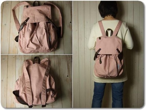 さらっとした薄手のキャンバス生地にフェイクレザーを使い合わせたリュックです。フラップ開閉はスナップタイプでフラップ部分と前面に大きなファスナーポケットがあり、両サイドに500mlのペットボトルがすっぽり入るオープンポケット付き、内側にもオープンポケットが1つ付いています。ショルダーは長さ54~85センチの間で調節ができます。背面の大きなファスナー開口部から荷物の出し入れができ便利です。 使い勝手のいいポケット多めのデザインに個性的なスクエアフォルムが◎ 色違いも出品中です。(完売している場合もあります。)