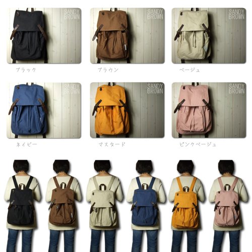 薄手キャンバスのスクエアフォルムなフラップリュック PB