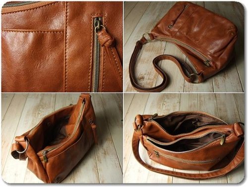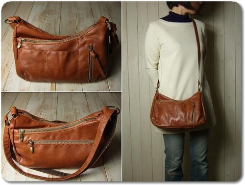 ・ムラ染め加工が雰囲気の良いクラシックフェイクレザーを使用した小振りなショルダーバッグです。本体ポケットは3層仕立てでメインの開閉はファスナータイプ、中央ポケットはマグネット付きです。前面にオープンポケットが2つと縦開きのファスナーポケットが1つ、背面に大きめのファスナーポケットが1つ付いています。内側にも片方にオープンポケットが2つ、もう片方にファスナーポケットが1つそれぞれ付いています。ショルダーストラップは幅が2センチ、長さは70~130センチの間で調節が可能です。 バナナ型の小振りなサイズにたくさんのポケットで使いやすさも◎です。 色違いも出品中です。(完売している場合もあります。)