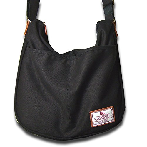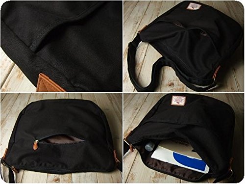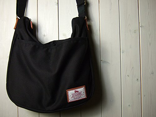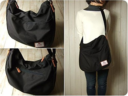 オープンポケットが便利なキャンバス素材ラウンドショルダー BK