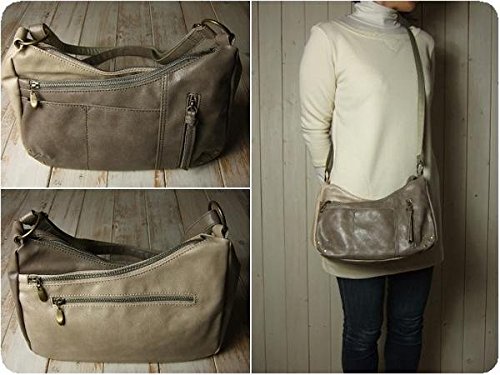 ムラ染め加工が雰囲気の良いクラシックフェイクレザーを配色で使用した小振りなショルダーバッグです。本体ポケットは3層仕立てでメインの開閉はファスナータイプ、中央ポケットはマグネット付きです。前面にオープンポケットが2つと縦開きのファスナーポケットが1つ、背面に大きめのファスナーポケットが1つ付いています。内側にも片方にオープンポケットが2つ、もう片方にファスナーポケットが1つそれぞれ付いています。ショルダーストラップは幅が2センチ、長さは70~130センチの間で調節が可能です。 バナナ型の小振りなサイズにたくさんのポケットで使いやすさも◎です。 色違いも出品中です。(完売している場合もあります。)