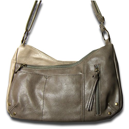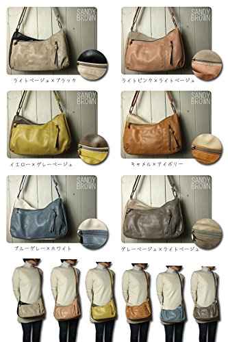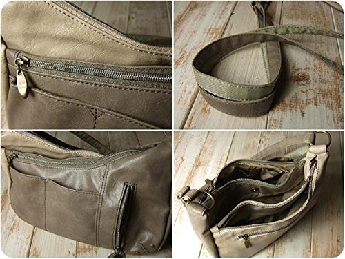 クラシックフェイクレザーのポケットいっぱい配色ショルダー グレーベージュ ライトベージュ