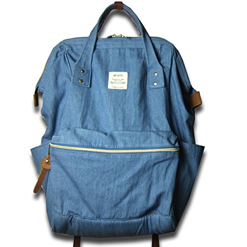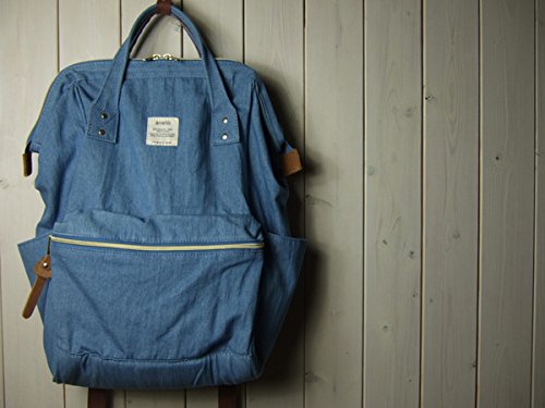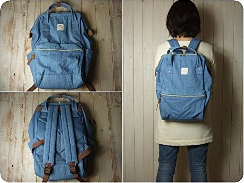 薄手デニム素材のガバッと開く口金入りリュック BL