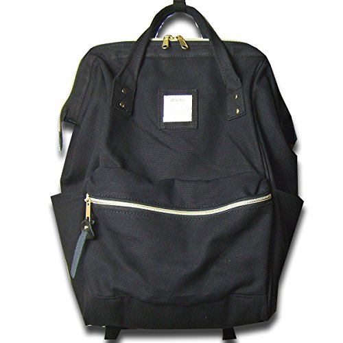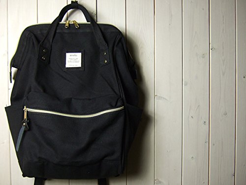 コットンキャンバス素材のガバッと開く口金入りリュックBK