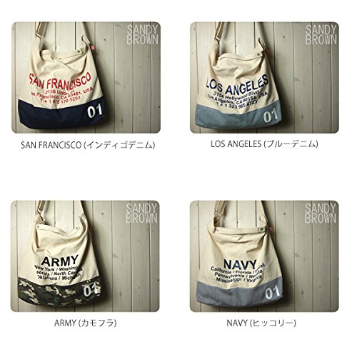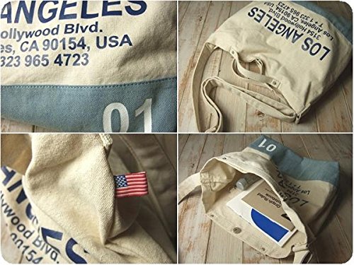 洗い晒し風のナチュラルなキャンバスにデニムやカモフラなどの異素材を使い合わせロゴをプリントしたショルダーバッグです。開口部分にはマグネット付きで、内側にDリング付きのオープンポケットが2つ付いています。ショルダーは幅3.7センチで長さは約60~114センチの間で調節可能です。ショートハンドル付きなのでトートバッグのように持つこともできます。 使い勝手のよいシンプルなフォルムでホワイトラバーのナンバーや国旗柄のタグがアクセントになっています。 色違いも出品中です。(完売している場合もあります。)