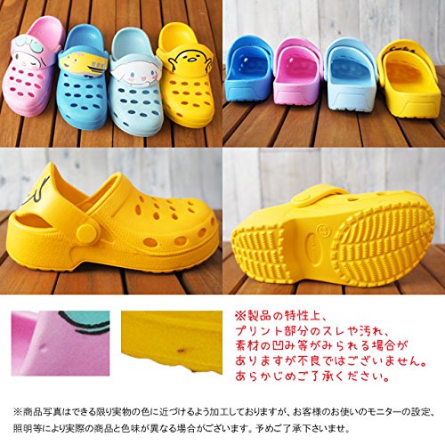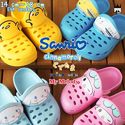 サンリオ SA09126 キッズ サンダル ■商品説明 ※こちらの商品には専用の梱包材なしの、商品のみのお届けとなります。 ピンク マイメロディ イエロー ぐでたま サックス シナモンロール ブルー シンカンセン 大人気のサンリオキャラクター大集合のとってもキュートなEVAサンダルが登場です♪柔らかい樹脂を使用した一体成形のサンダルなので軽く、素足で履いても足が痛くなりにくい。バンドは可動式なのでしっかり歩くときにはバックバンドとしてシューズ感覚で、ちょっとそこまでの時にはアッパー側にしてサッと脱ぎ履きしやすく♪お手頃プライスなのも嬉しいポイント☆水遊びやおでかけにもピッタリな一足です(*´ω`*) ■素材 メイン素材: 合成樹脂 ソール素材または裏地: 合成底
