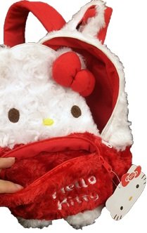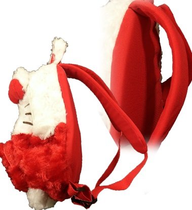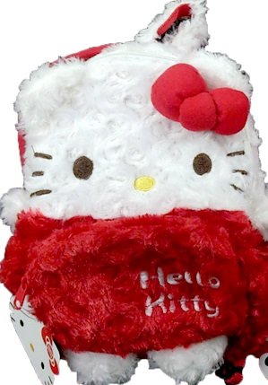 ハローキティのぬいぐるみリュックです。触り心地がとてもよく、かわいらしい商品です。女の子の贈り物にいかがでしょうか?