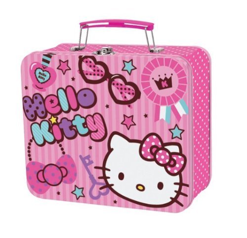 Store all your yummy goodies in this cute and fun Hello Kitty Lunch Metal Box with fun Lovely theme. This lunch box has a nice purple handle, making this lunch box super portable.