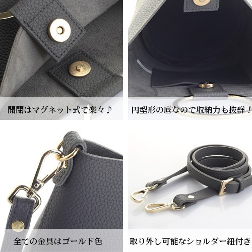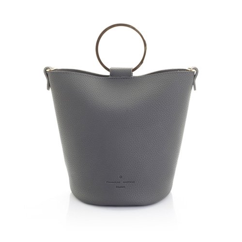 リングハンドル バケツ型 ショルダーバッグ 2way リングハンドル バッグ ゴールド リング バッグ 2WAY フェイク レザー レディース 斜めがけ トートバッグ (グレー)