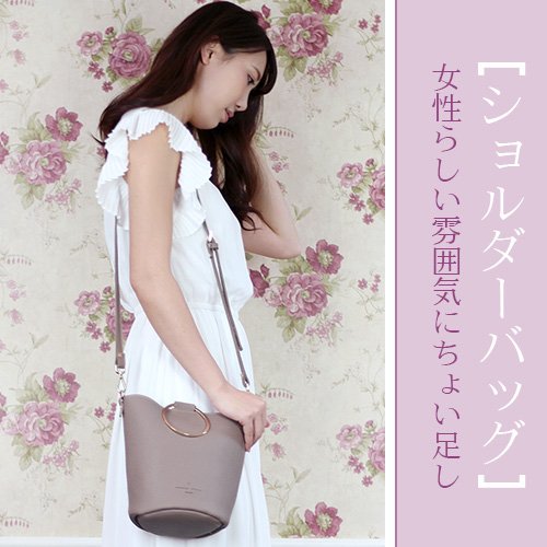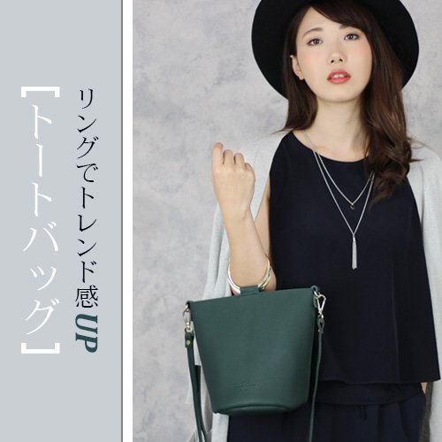 トレンド感のあるリングの金手がどんなコーデも女性らしい雰囲気に♪ トートバッグと斜め掛けの2wayで使って頂けます。