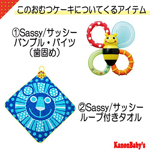 人気のSassy/サッシーのタオルやぬいぐるみ、おもちゃを使い、かわいいおむつケーキに仕上げておりますので、出産祝いはもちろん、内祝い、100日祝い、ハーフバースデー、初節句、お誕生日プレゼントに大変喜ばれるギフトです。