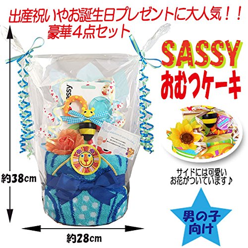 Sassy サッシー おむつケーキ 出産祝い 赤ちゃん プレゼント 内祝い 誕生日プレゼント 人気 ギフト ダイパーケーキ 男の子 (パンパースS12 (出産祝い用に))
