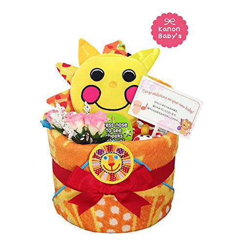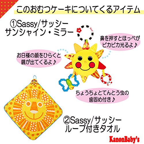 人気のSassy/サッシーのタオルやぬいぐるみ、おもちゃを使い、かわいいおむつケーキに仕上げておりますので、出産祝いはもちろん、内祝い、100日祝い、ハーフバースデー、初節句、お誕生日プレゼントに大変喜ばれるギフトです。