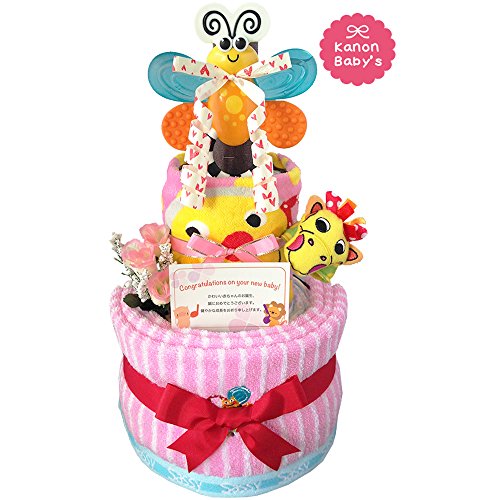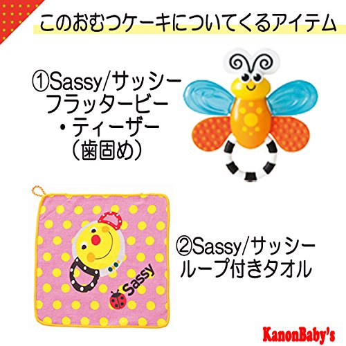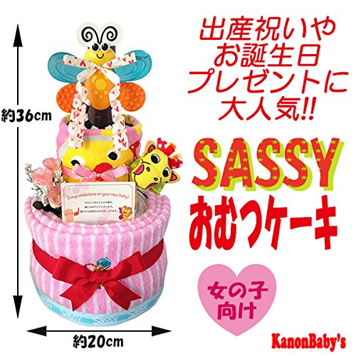 人気のSassy/サッシーのタオルやぬいぐるみ、おもちゃを使い、かわいいおむつケーキに仕上げておりますので、出産祝いはもちろん、内祝い、100日祝い、ハーフバースデー、初節句、お誕生日プレゼントに大変喜ばれるギフトです。