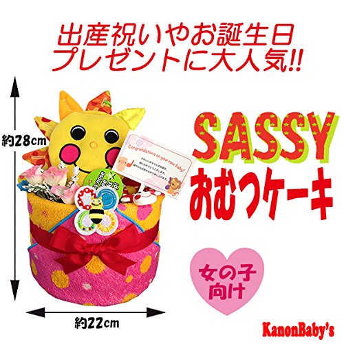 出産祝いに大人気!おむつケーキ Sassy(サッシー) サンシャイン・ミラー/赤ちゃんの内祝い・誕生日プレゼント ギフトセット ダイパーケーキ/女の子 (パンパースS20 (出産祝い用に))