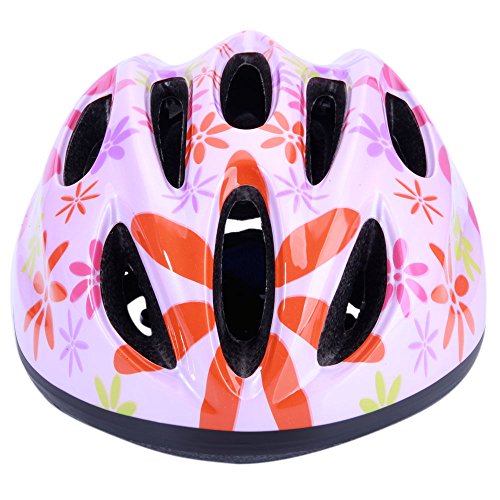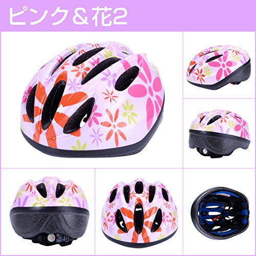 子供ヘルメット 自転車 子供用 キッズヘルメット ジュニア 自転車用品 軽量 通勤通学 48-58cm ダイヤル調整 キッズ/ジュニア/こども用/通園/入園祝い ピンク&花2