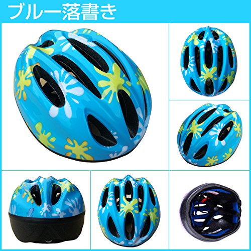 ヘルメット 自転車 子供用 キッズヘルメット ジュニア 自転車用品 軽量 通勤通学 48-58cm ダイヤル調整 キッズ/ジュニア/こども用/通園/入園祝い ブルー落書き