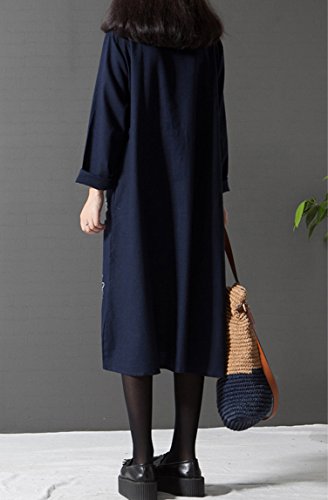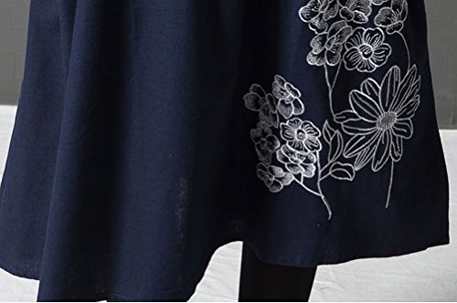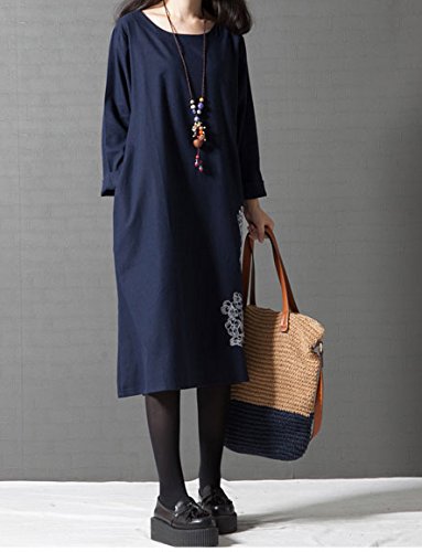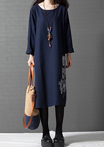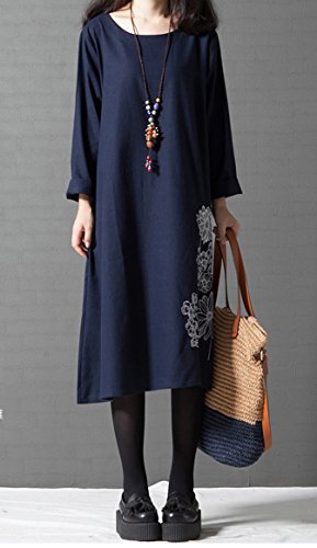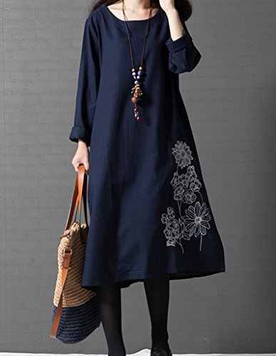 セレクティア(SELECTIA) Aライン ワンピース ゆったり 綿 麻 アジアン 着やせ チュニック エスニック 花柄 長袖 トップス ( XL)