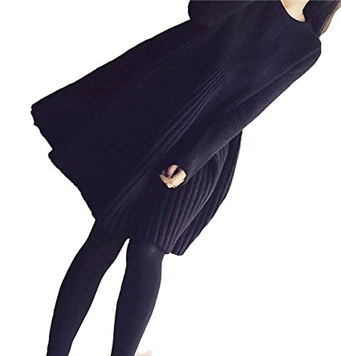 セレクティア(SELECTIA) リブ ニット ワンピース 裾広がり チュニック ワンピ フリー サイズ 黒 マタニティー (ブラック )