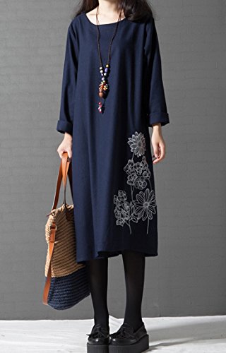 セレクティア(SELECTIA) Aライン ワンピース 薄手 コットン アジアン 着やせ チュニック エスニック 花柄 マタニティ リゾート 紺 ネイビー ( XXL)