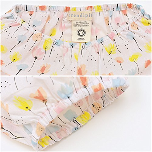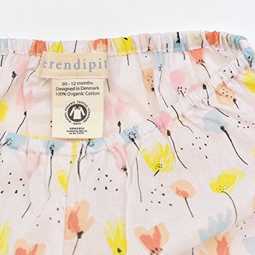 デンマークのベビー・キッズウェアブランドserendipity(セレンディピティ)のオーガニックコットン ベビー パンツです。 おむつやパンツをすっぽり包んで隠してくれるバルーンパンツは女の子の必需品。 レギンスの上に重ねたり、スカートの下にはいたり、暑い季節にはボディースーツやTシャツと合わせておむつやショーツの上にこれ一枚で・・・いろいろ履けて大活躍。 ふっくらしたシルエットにウエストも足口も細めのゴムで食い込みにくいので、履き心地らくらくです。 ※ゴムの取り換え口はありません。 サイズ : 12M(80cm):脇丈24cm 股下7cm ウェスト44cm 24M(92cm):脇丈27cm 股下7cm ウェスト46cm ※綿衣料品の特性上、個体差がある旨ご了承ください。 素材 : オーガニックコットン100%・平織生地 カラー : Daisy(グレー)・Poppy(ホワイト) 原産国 : インド
