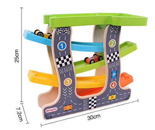 sesta7 木製スロープ ミニコースター 木のおもちゃ 知育玩具 滑り台 子ども スロープトイ 車4台付き 【知育玩具】カラフルなデザインがパッと見ただけで小さなお子さまの興味をひきつける木のおもちゃです。遊びを通じ自然と集中力・創造力・好奇心などが楽しく身に付く。 【ミニカー4台付属】車が4段のレールを右へ左へと順番に降りていくシンプルな動きですが、これが子どもには楽しくてたまらない!きっと同じことを何度も何度も繰りかえすことでしょう。 【木のおもちゃ】材質は美しい木目と肌ざわりのよい高品質な天然木を使用しています。木のぬくもりも感じられるアイテムです。 【安心して遊べる】木製スロープは安全性のため角部分は丸角になっていますので怪我の心配もなく遊べます。 【プレゼントに最適】収納もコンパクト。お誕生日や贈り物・ギフト・出産祝い・クリスマス・入卒園祝いクリスマスなどのプレゼントにいかがですか。