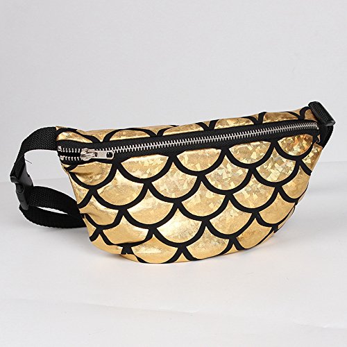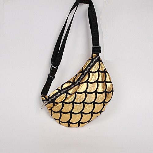 イエススポーツ レディース 人魚 鱗 ウエストバッグ ジュエリー ポーチ ショルダー 小物入れ 化粧品収納 キラキラ (ゴールデン)