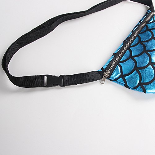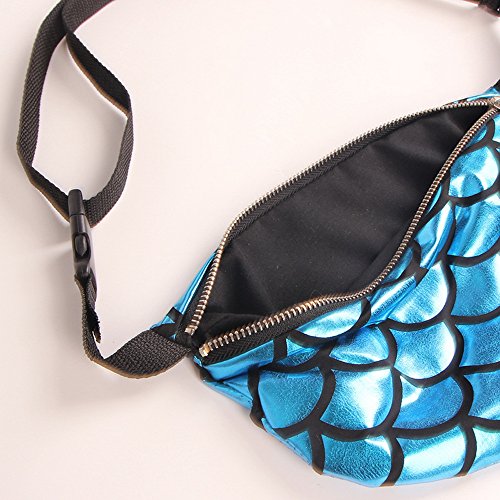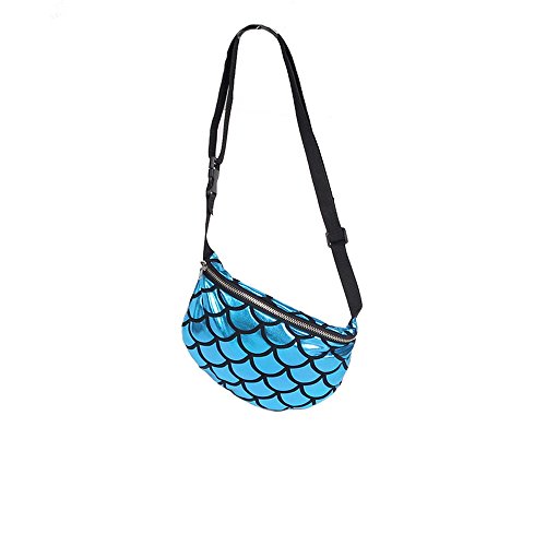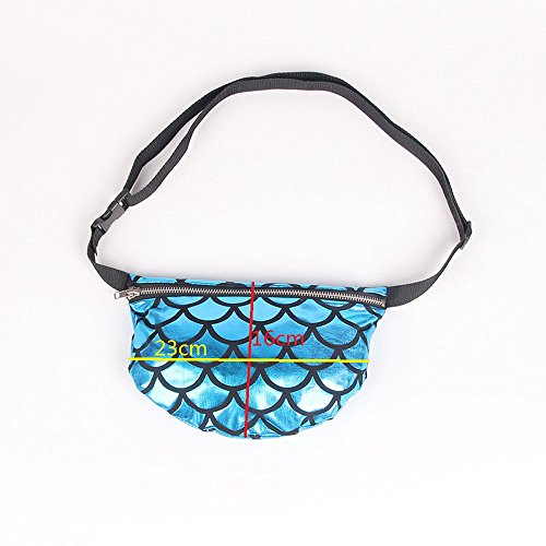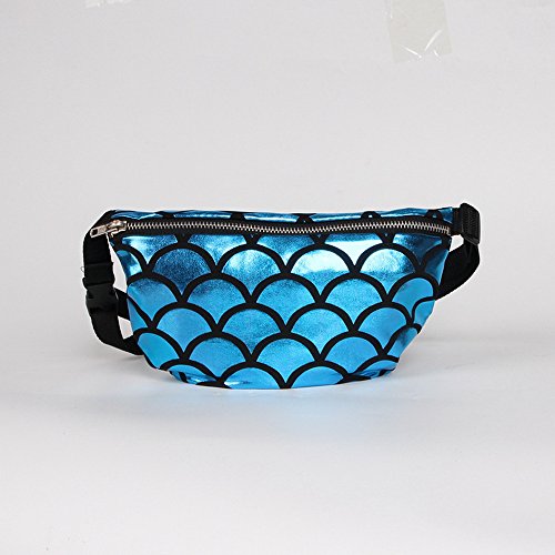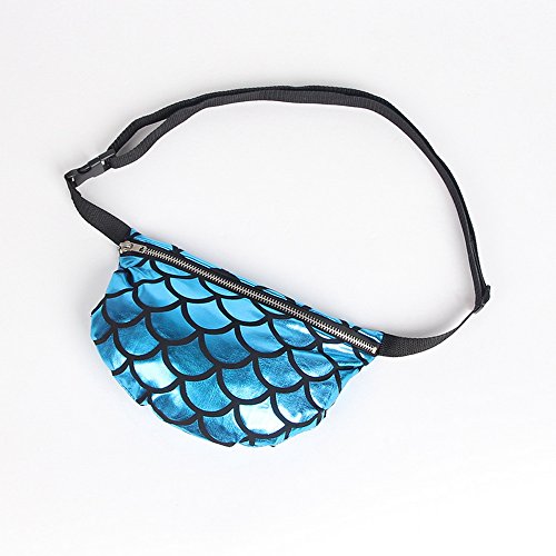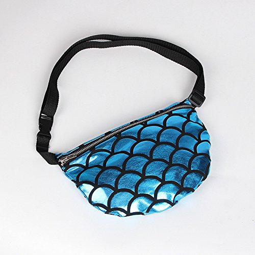 イエススポーツ レディース 人魚 鱗 ウエストバッグ ジュエリー ポーチ ショルダー 小物入れ 化粧品収納 キラキラ (ブルー)