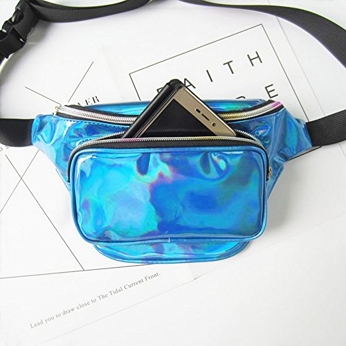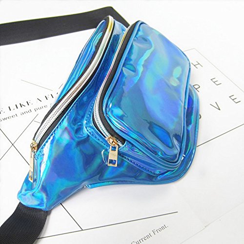 イエススポーツ ホログラム ウエストバッグ ジュエリーポーチ 小銭 小物入れ 収納 全5色 (ブルー)