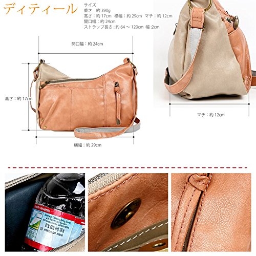 お出かけや用事にぴったりの、軽量合皮バッグ♪ フロントデザインは2カラーの配色のため、好きな 色の方をその日の気分で向けることができます♪ 収納出来る入口が3つにわかれてあり、多収納な ショルダーバッグ! 長財布と500mlペットボトルも横向きにそれぞれ 収納出来て便利です♪それぞれの用途に合わせて 使える機能的なポケットが大人気です! 【商品詳細】 【素材】合皮 【重さ】約390g 【サイズ】高さ:約17cm / 横幅:約29cm / マチ:約12cm ストラップ長さ: 約64~121cm (幅:2cm) メイン収納 ファスナー×2、マグネット×1 【外ポケット】ファスナーポケット×2、オープンポケット×2 【内ポケット】小物用オープンポケット×1、携帯電話用ポケット×1、 ファスナーポケット×1 【生産国】中国 検索用キーワード:ショルダー ショルダーバッグ フェイクレザー 斜め掛け 斜めがけバッグ レディースバッグ 旅行 旅行用バッグ トラベル 多収納