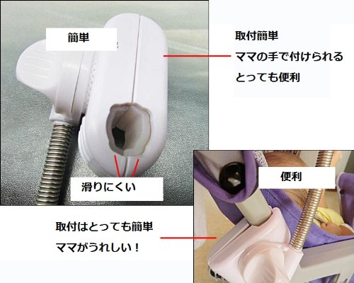 - 取付簡単、道具使わず、ママの手でラクラク付けられる