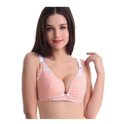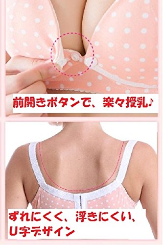 ドット柄 マタニティ 授乳 兼用 ブラ ハーフトップ フロントオープン 綿 ブラジャー (36, パステルピンク)