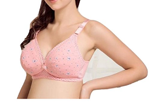 小さな 蝶が ラブリー マタニティ 授乳 兼用 ブラ ハーフトップ フロントオープン 綿 ブラジャー (38, ピンク)
