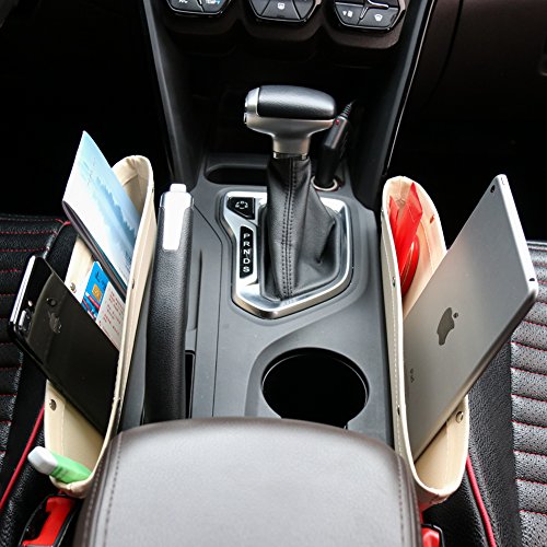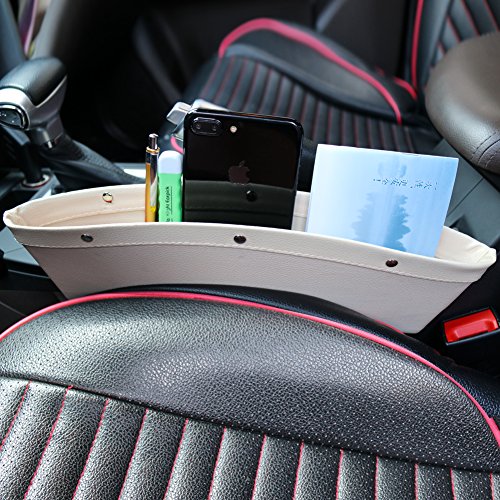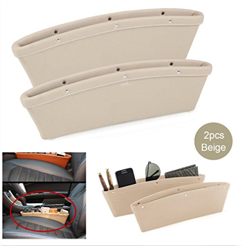 Sindax 車用収納ポケットカー用品 車内 すき間ボックス 車 収納 車用シートサイド 小物入れ 車内 サイドポケット 簡単装着 自動車用 超スリム ベージュ 1個