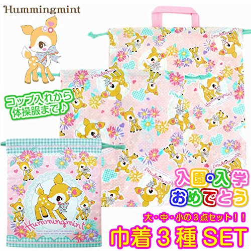 巾着袋 きんちゃく 3点セット ハミングミント サンリオ コップ袋 給食袋 体操服袋 女児 女の子 fo-067484a