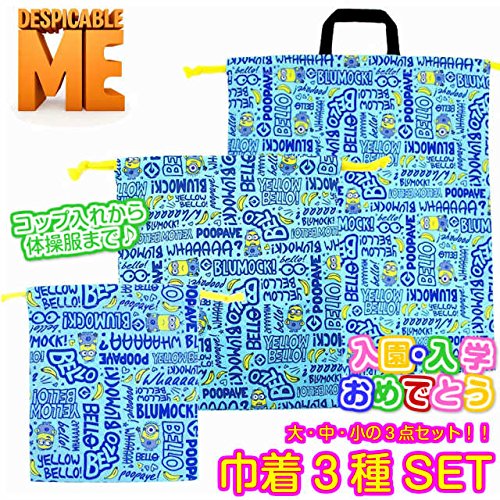 巾着袋 きんちゃく 3点セット ミニオンズ 怪盗グルーコップ袋 給食袋 体操服袋 男児 男の子 fo-067538a