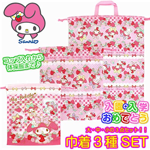 巾着袋 きんちゃく 3点セット マイメロディ サンリオ コップ袋 給食袋 体操服袋 女児 女の子 fo-067460a