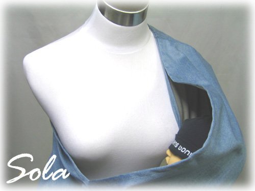 「軽い」、「丈夫」、「心地良い」を徹底的に追求した『sola(ソ・ラ)』の「ゆりかごスリング」です。 まるで、コウノトリが赤ちゃんを乗せて運んで来たゆりかごをイメージしたスリングです。 大人気商品です! オールドデニムを使用しておりますので、とても軽くて丈夫です。 お好きなカラーをお選び下さい。 素材だけではなく、赤ちゃんの心地良さを徹底的に追求しました。 オールドデニムの落ち着いた色合いや素材感に、シンプルなデザインですので、お母さんのあらゆるファッションにもよく似合います。 季節を問わず一年中ご利用下さい。 新生児から使用できます。 好みで選んでいただけるお洒落なカラーが揃っています。 サイズは約136cmです。(多少の誤差はあります) たっぷりと幅(約17cm)をとってありますのでとても楽ですし、肩からずり落ちることもありません。 コンパクトにまとまるので持ち運びにも大変便利です。 ご家庭用に、出産祝いに、ぜひお求め下さい!