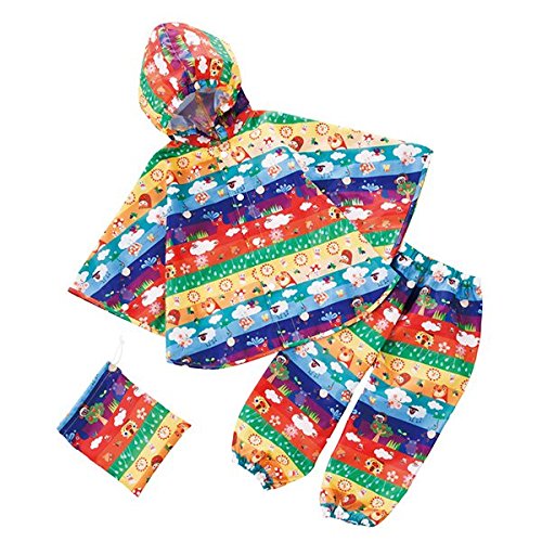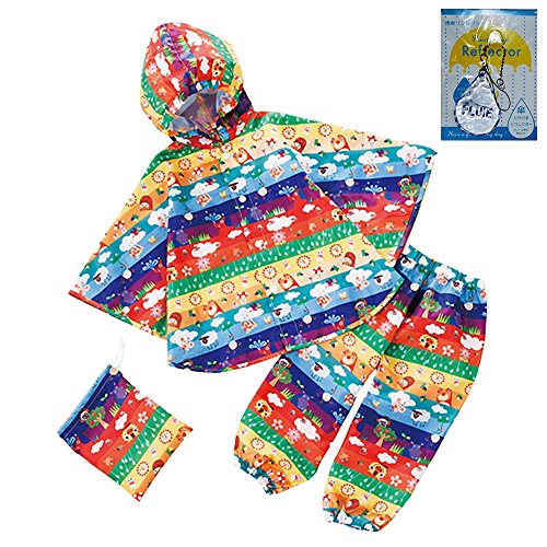 脱がせやすい・着せやすい! レインポンチョ+パンツ=ぱんちょ。サッと羽織れるポンチョは突然の雨でも大活躍!ベビーカーに乗せたまま!抱っこひもの上から!屋内から車に移動する時!どんなお天気も大好き!「お天気しましま」柄 晴れの日は楽しいけど雨の日だって楽しんじゃおう。カラフルな色の中に隠れているかわいい仲間たちと一緒にお出かけしよう。 リフレクター:傘に付けられる反射板マスコット(リフレクター)付。車のヘッドライトの光をそのまま反射してドライバーに知らせる交通安全グッズです。傘への取り付けで視界の悪い雨の日の交通安全に役立ちます。ビニール傘の目印にも。(商品の使用上の注意をお読みください)