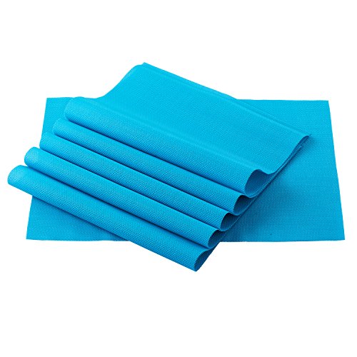 placemats-sosoon耐熱Woven汚れ防止滑り防止洗濯可能PVCテーブルマット、6のセット 12.3in*8.1in*1.4in ブルー