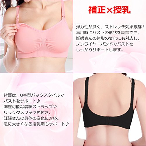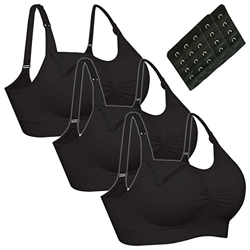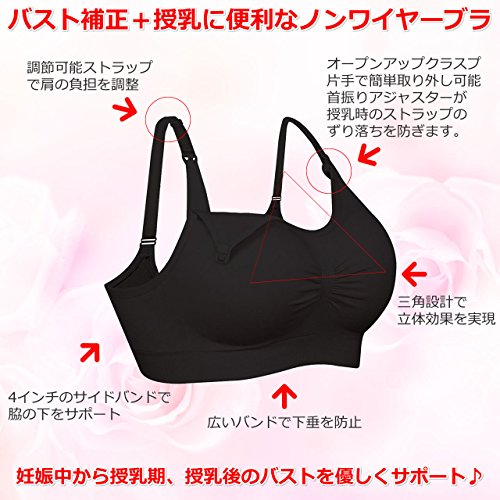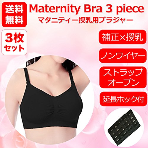 マタニティー 授乳用ブラジャー 妊婦 産後 矯正下着 ノンワイヤー ブラジャー 延長ホック付き 3枚セット (XL, ブラック×3個)