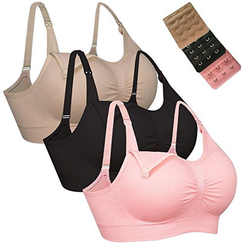 マタニティー 授乳用ブラジャー 妊婦 産後 矯正下着 ノンワイヤー ブラジャー 延長ホック付き 3枚セット ( ピンク+ベージュ+ブラック,XL)