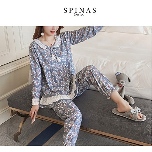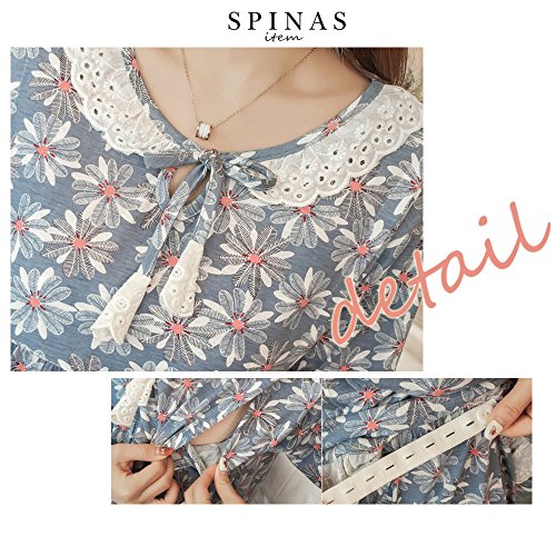 Spinas(スピナス) マタニティ ウェア パジャマ 授乳口付き 綿 前開き 産前産後 セットアップ 花柄 グレー