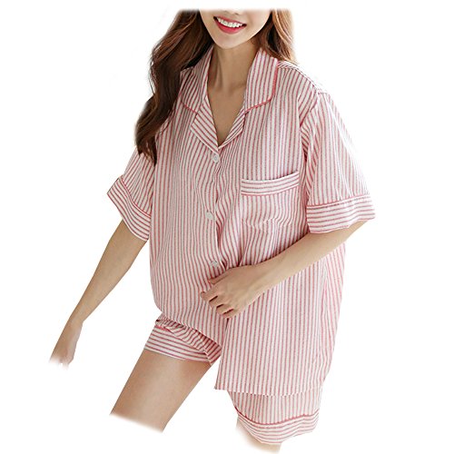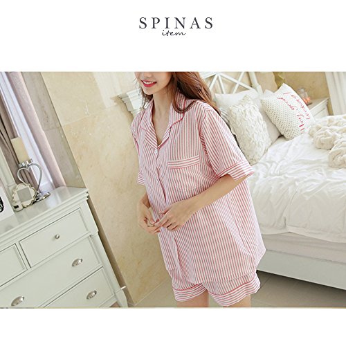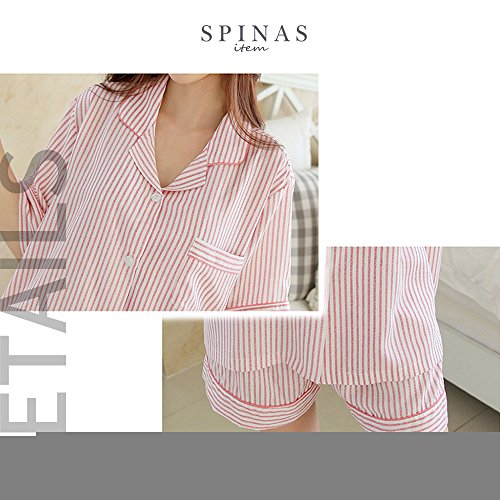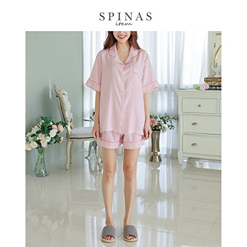 Spinas(スピナス) コットン パジャマ 前開き 半袖 ルームウェア マタニティ ストライプ 全2色(ピンク、ブラック)