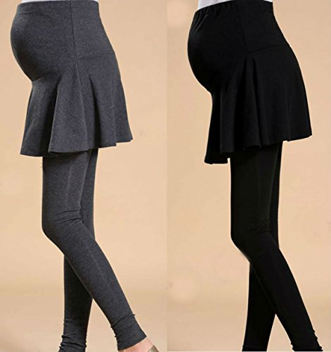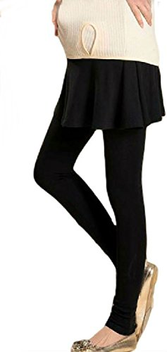 ミコプエラ(Micopuella) マタニティ フレア スカート 付き レギンス パンツ (ウエスト 調整機能 ) オールシーズン 妊婦 スカッツ スパッツ フリーサイズ ( ブラック )