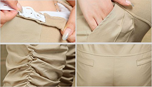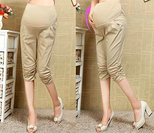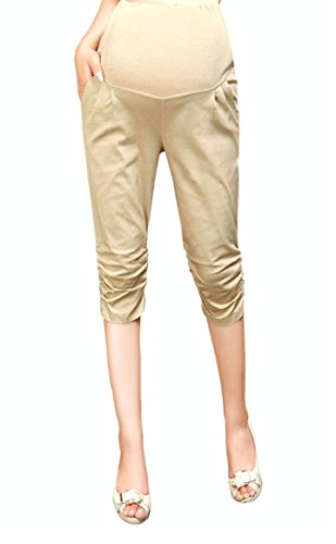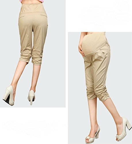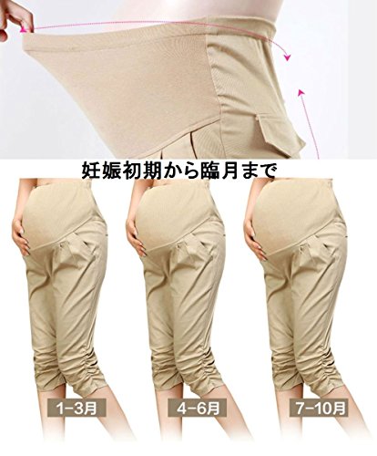 【Micopuella】 マタニティ シャーリング クロップド パンツ 7分丈 ストレッチ 妊婦 らくちん ズボン ウエストゴム 調節可能 (ライトベージュL)