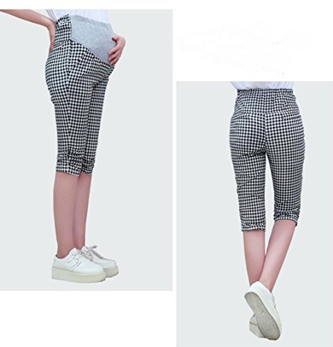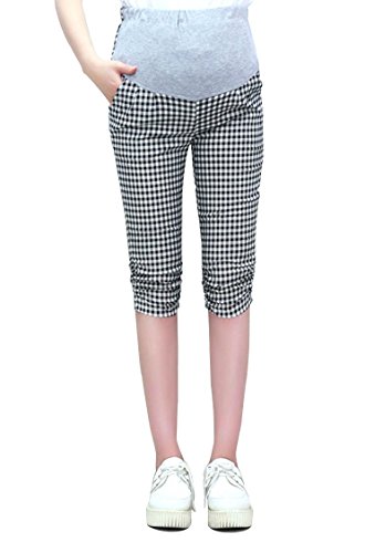 【Micopuella】 マタニティ シャーリング クロップド パンツ 7分丈 ストレッチ 妊婦 らくちん ズボン ウエストゴム 調節可能 (チェックM)
